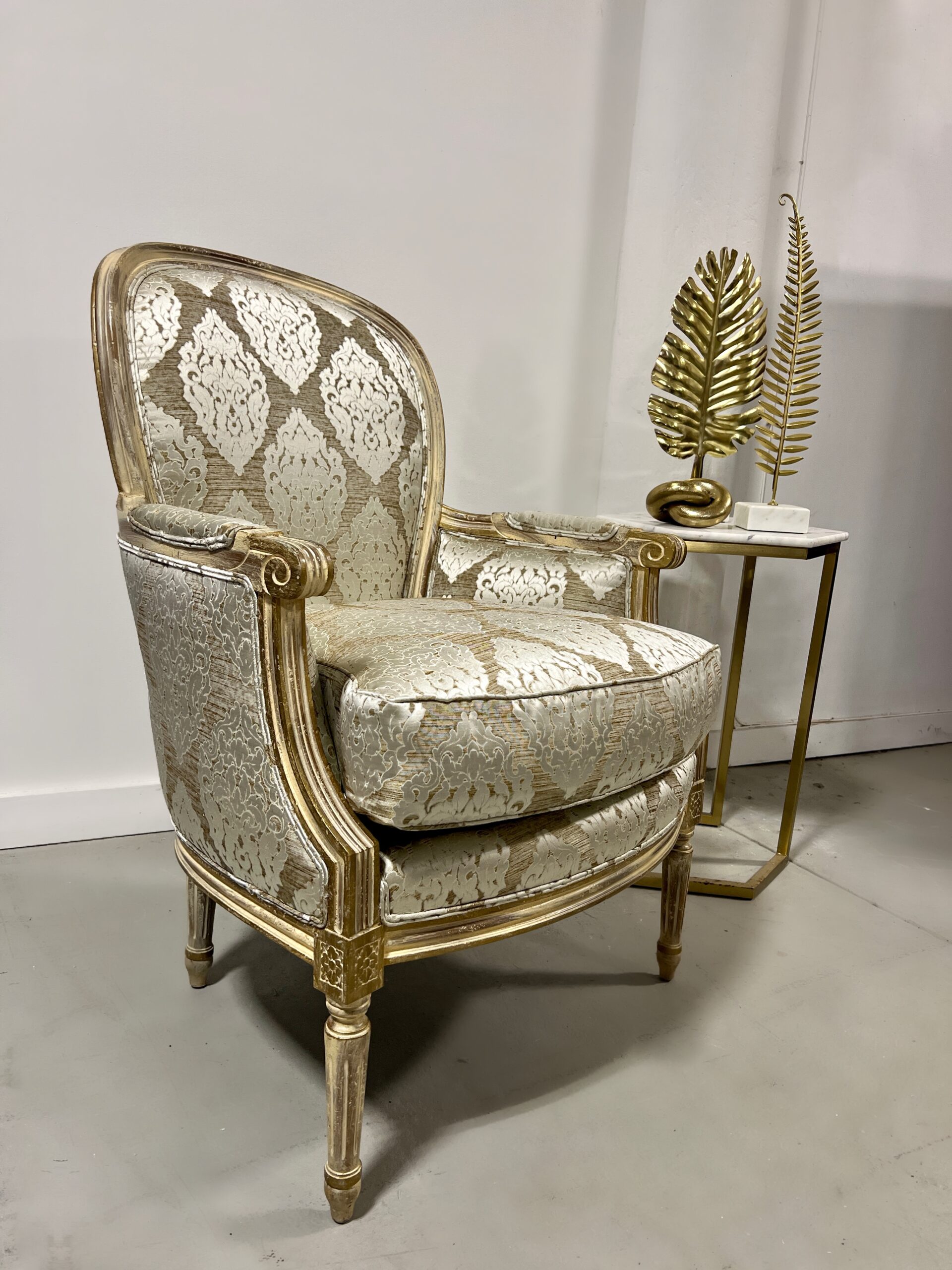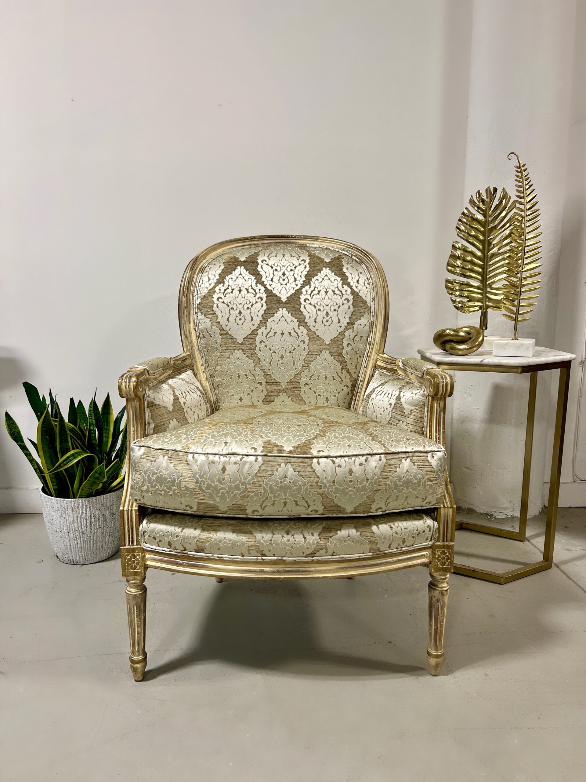 Upholstered in Scalamandre Gold Damask