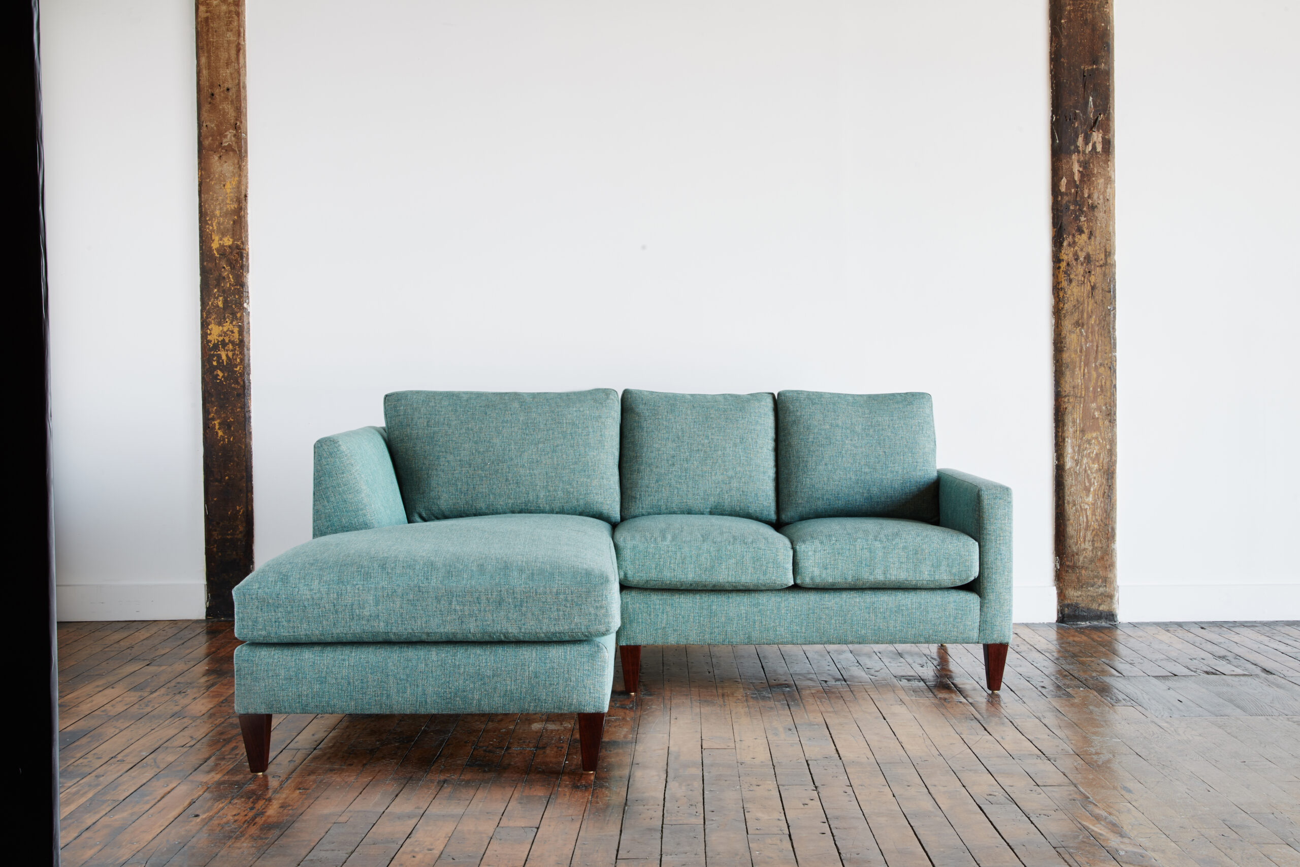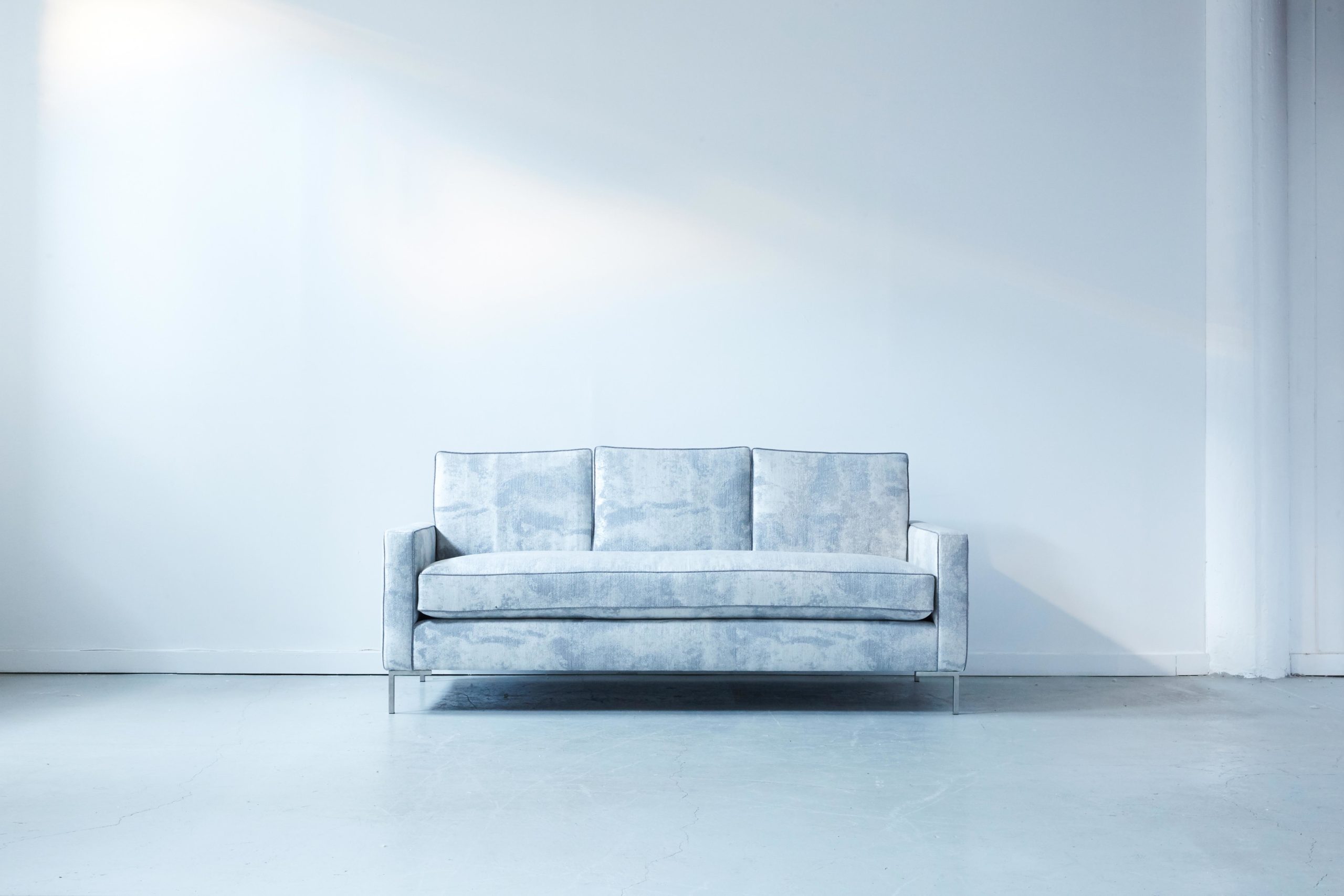 The Driggs slender track arm design is perfect for tight spaces where maximizing seat space is key. Keeping the same proportion of leg height, front board and cushion thickness creates a balanced modern design. This piece can be softened with warm wooden legs as opposed to the brushed stainless shown here. A versatile design that looks excellent with a number of cushion combinations.